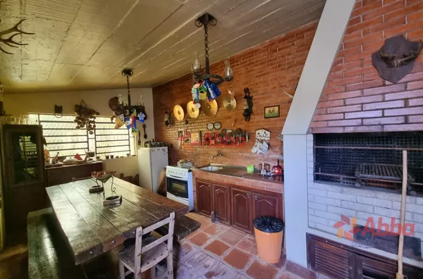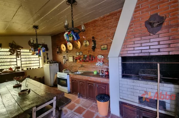Parte de cima: 3 dormitórios, sendo uma suite, sala estar, sala com lareira ,banheiro socialAndar de baixo: 1 dormitório com suite, sala em anexo; cozinha, área serviços, lavanderia, espaço gourmet com churrasqueira, despensa, banheiro auxiliar, garagem para 2 carros Piscina ampla