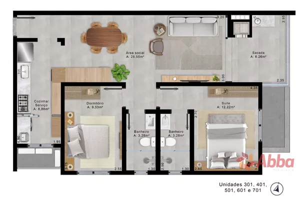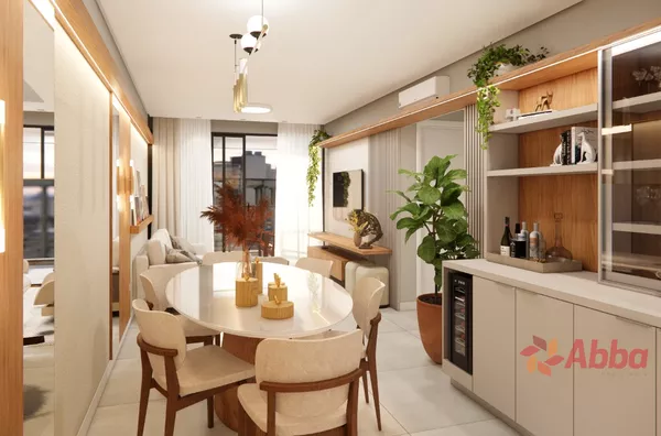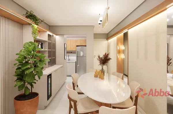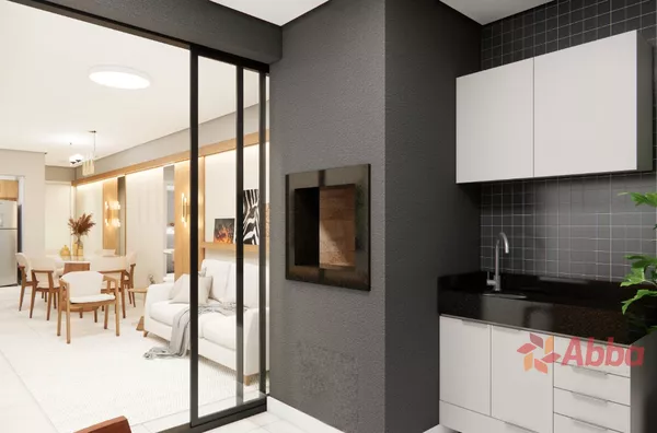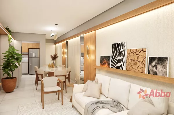 2 Dormitórios 1 sendo suíte, sala, varanda com churrasqueira e pia anexa, banheiro social, cozinha/área de serviço, garagem.