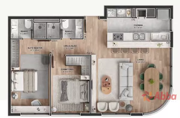 Apartamento de 2 dormitórios 1 sendo suíte, sala, banheiro social, cozinha e garagem.Prédio possuí spa, academia, quadra de Beach Tennis, piscina, espaço kids, espaço gourmet e playground.