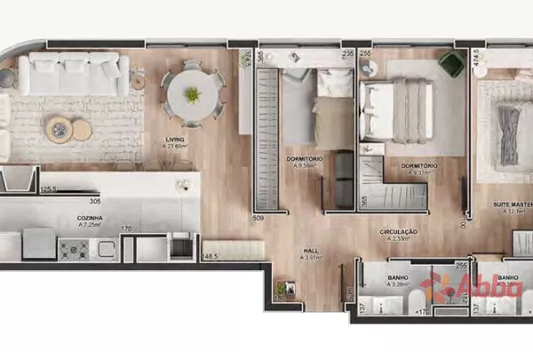 Apartamento de 3 dormitórios 1 sendo suíte, sala, banheiro social, cozinha e garagem.Prédio possuí spa, academia, quadra de Beach Tennis, piscina, espaço kids, espaço gourmet e playground.