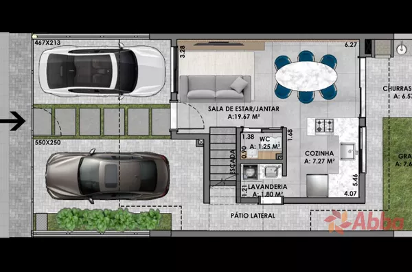 3 dormitórios 1 sendo uma suíte master, banheiro, lavabo, cozinha, vaga para dois carros, sala/sala de jantar e espaço gourmet.